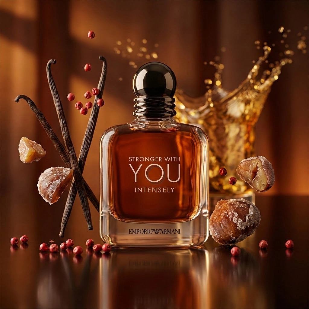 Stronger With You Intensely no es solo un perfume, es una declaración de intenciones. Esta fragancia captura la esencia de una historia de amor moderna y audaz, fusionando la frescura vibrante de la pimienta rosa con un corazón profundamente adictivo de vainilla y maderas ambarinas. Es el equilibrio perfecto para el hombre que busca dejar una huella cálida, sensual y memorable en cada encuentro.
