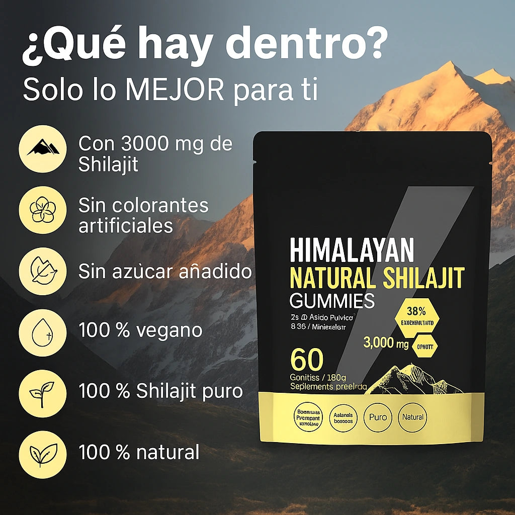 🔥 Recupera tu energía, tu fuerza y tu confianza con Himalayan™ Shilajit . Una fórmula ancestral del Himalaya en modernas gomitas, diseñada para impulsar tu vitalidad, optimizar tu rendimiento y despertar tu máximo potencial cada día.